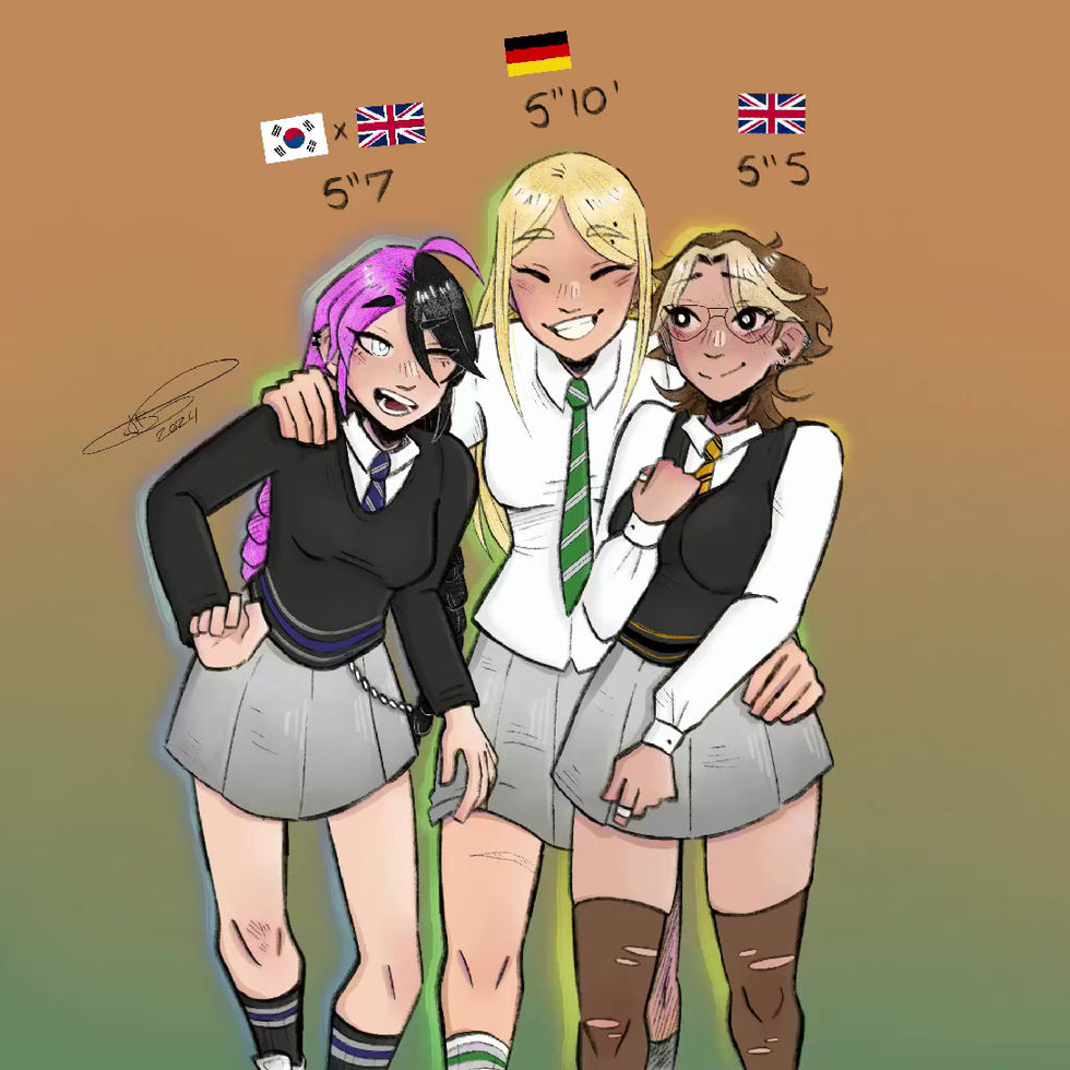 3 characters full body illustration. Fully rendered.